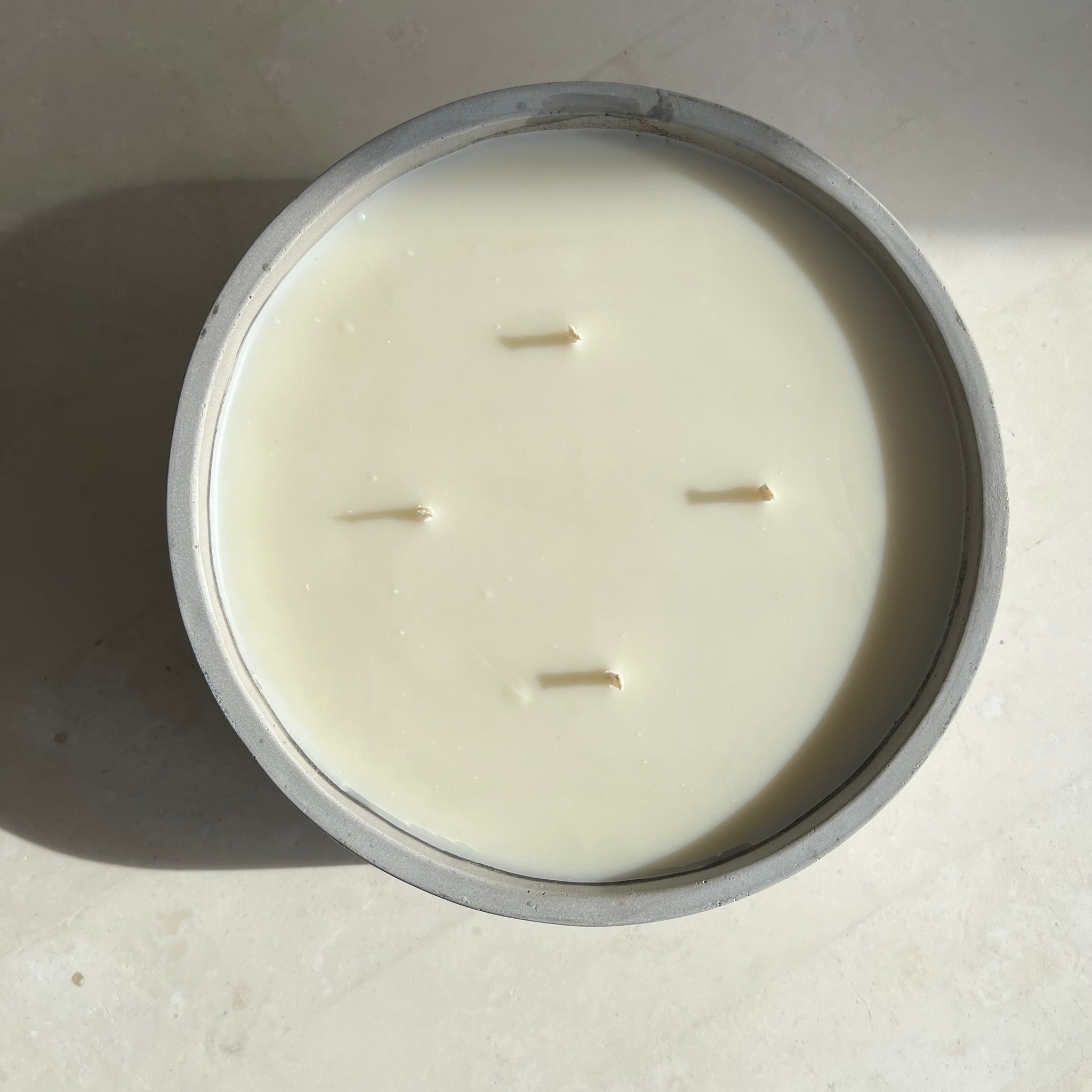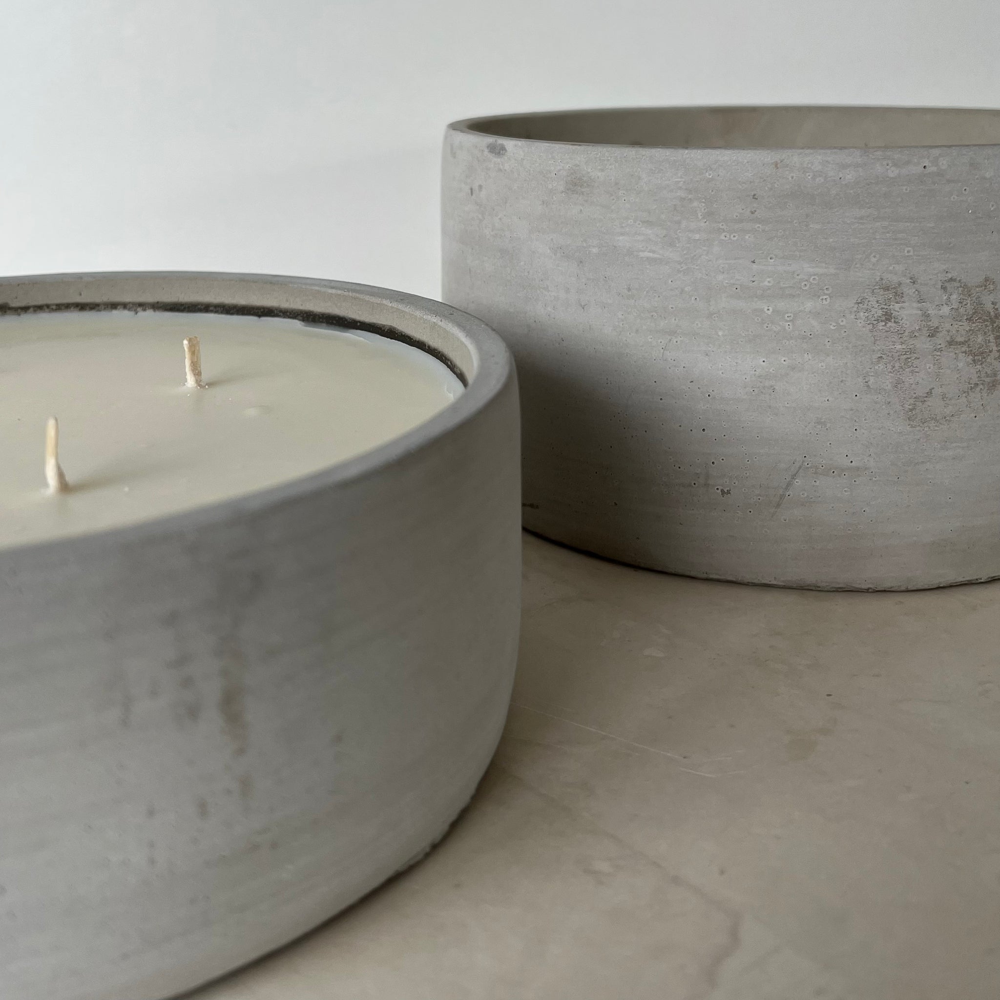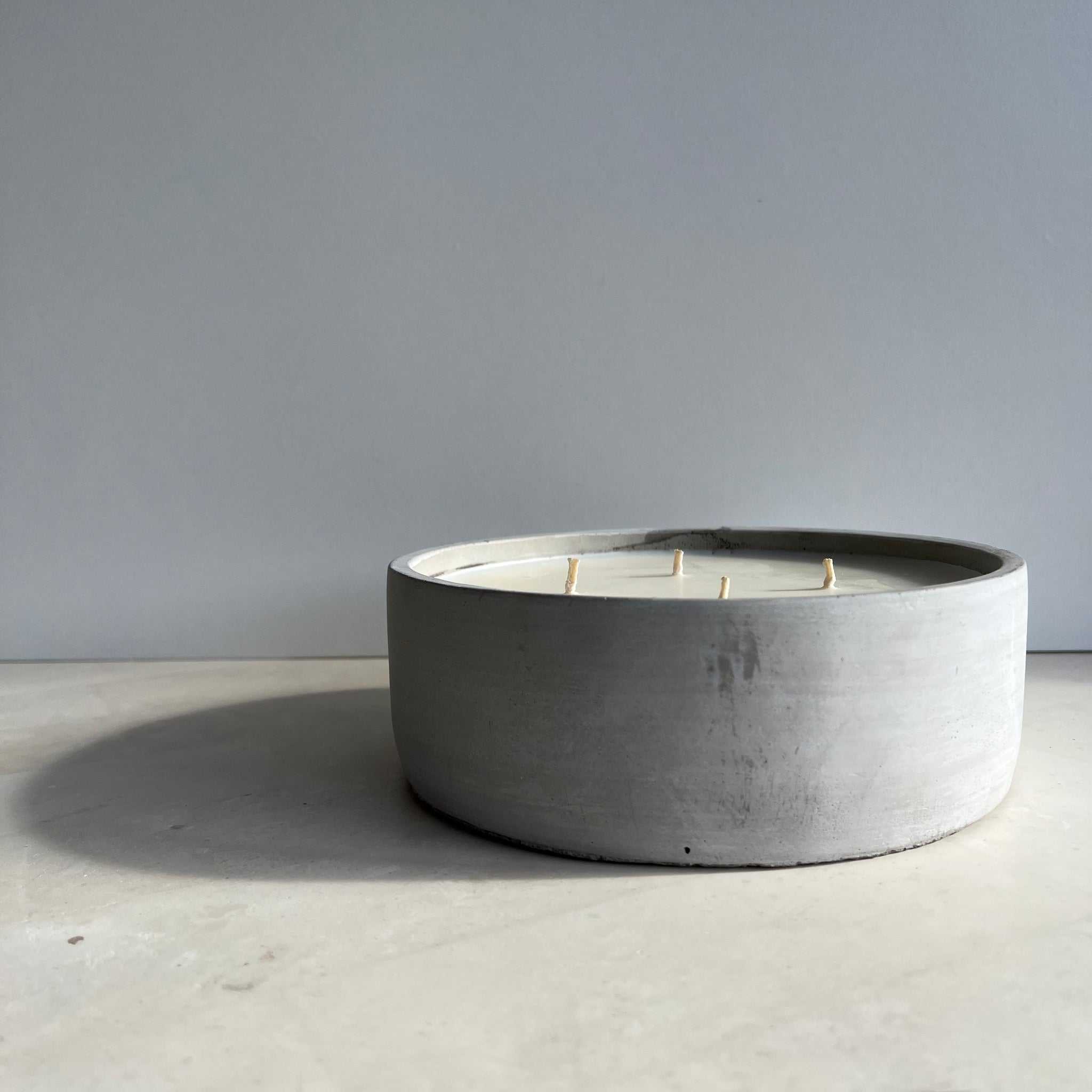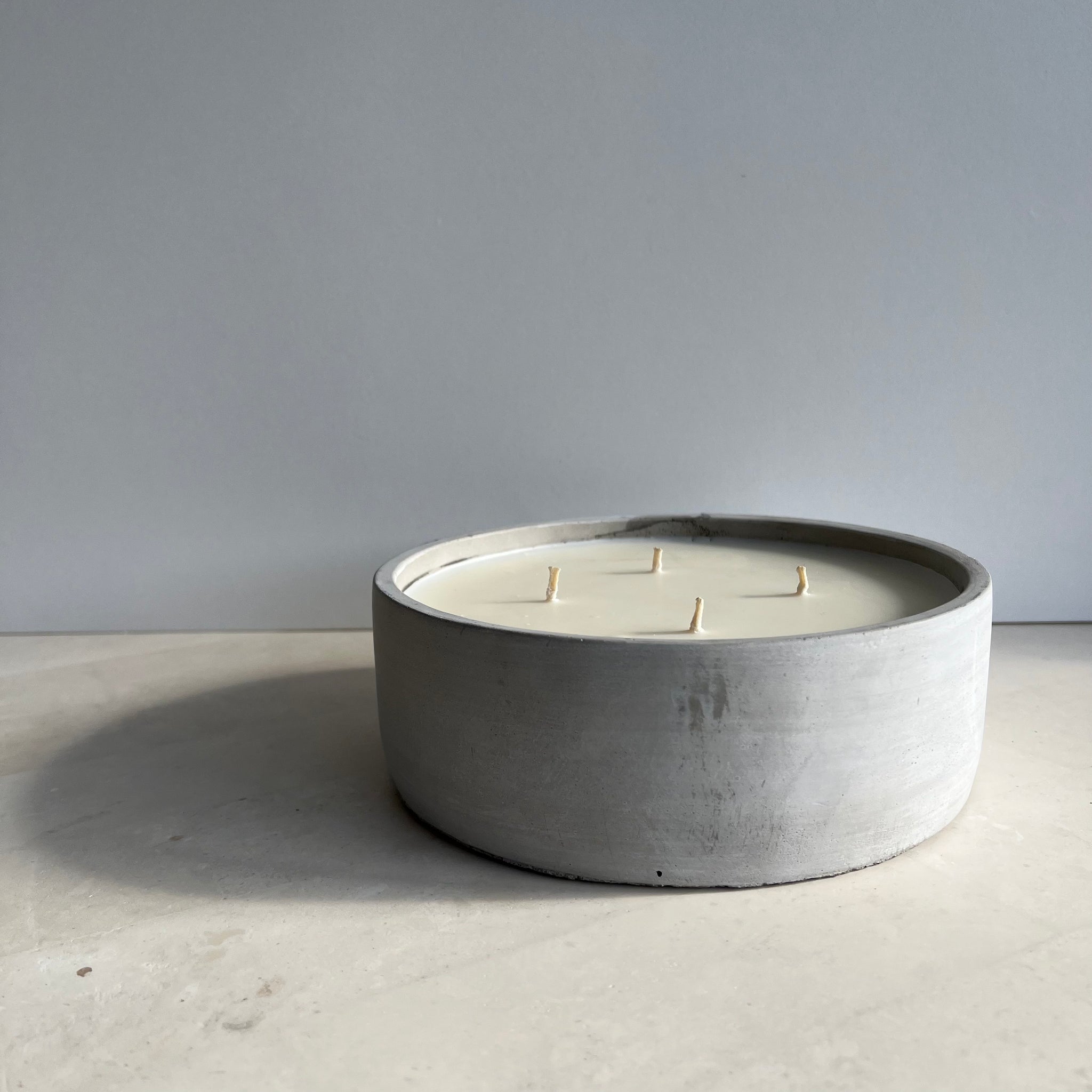 The KRETE Bol Brute 850 is crafted in raw unpolished grey concrete, featuring four wicks, offering a timeless natural industrial aesthetic.